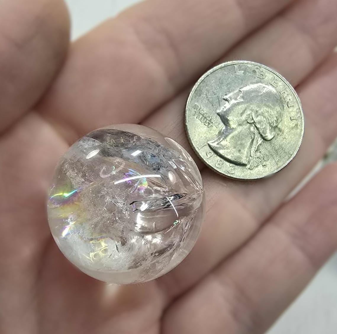 ✨ Discover the elegance of these rainbow quartz spheres! Perfect for crafting jewelry or as a display piece, these spheres add a touch of natural beauty to any setting. The small sphere measures approximately 15mm in diameter, while the larger one is about 25mm. Each sphere is natural, ensuring a unique appearance. 🎉